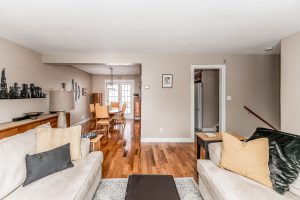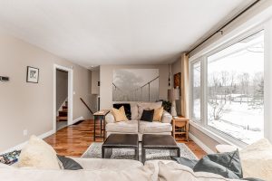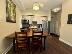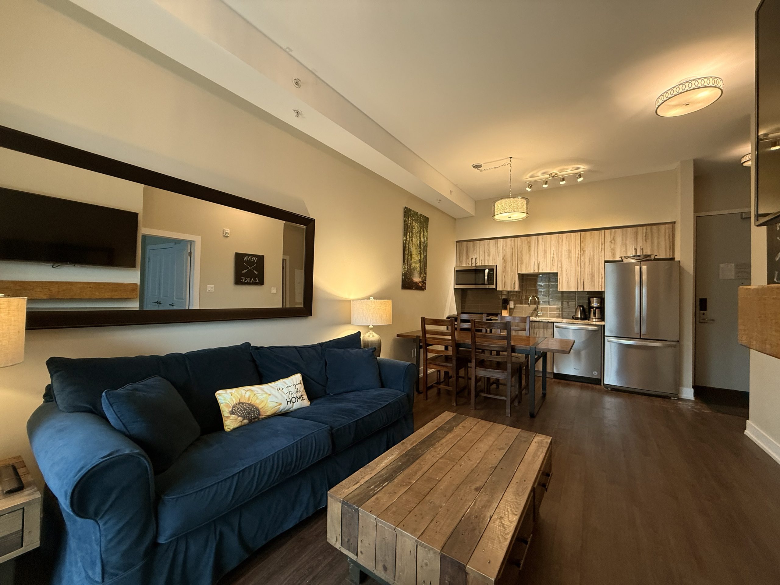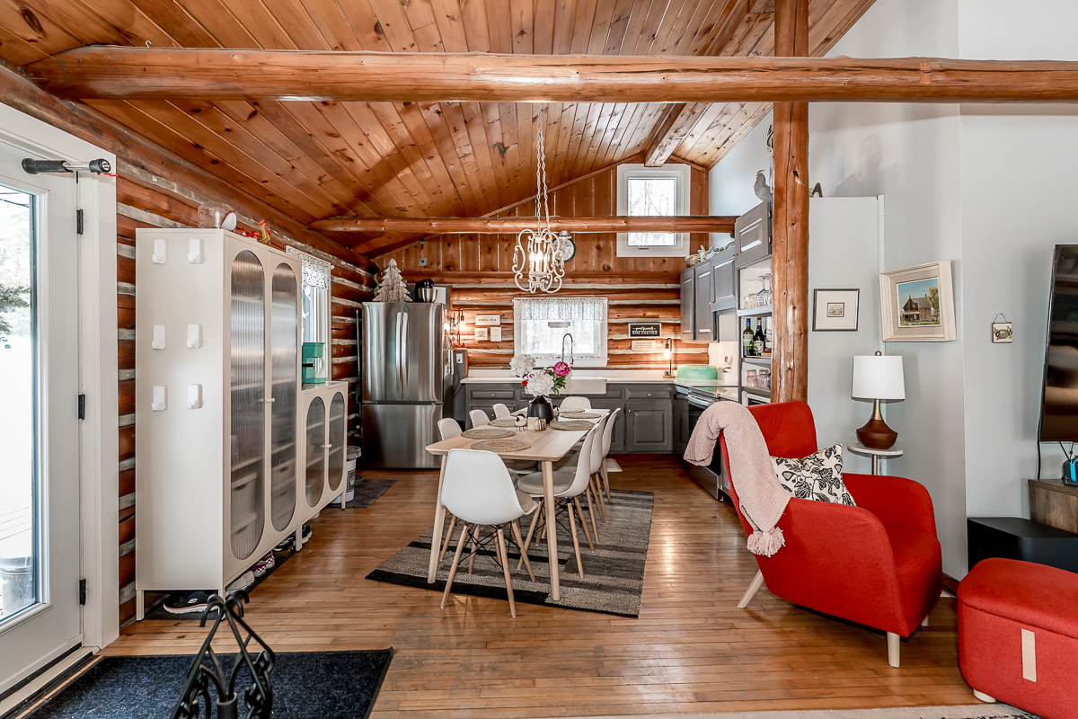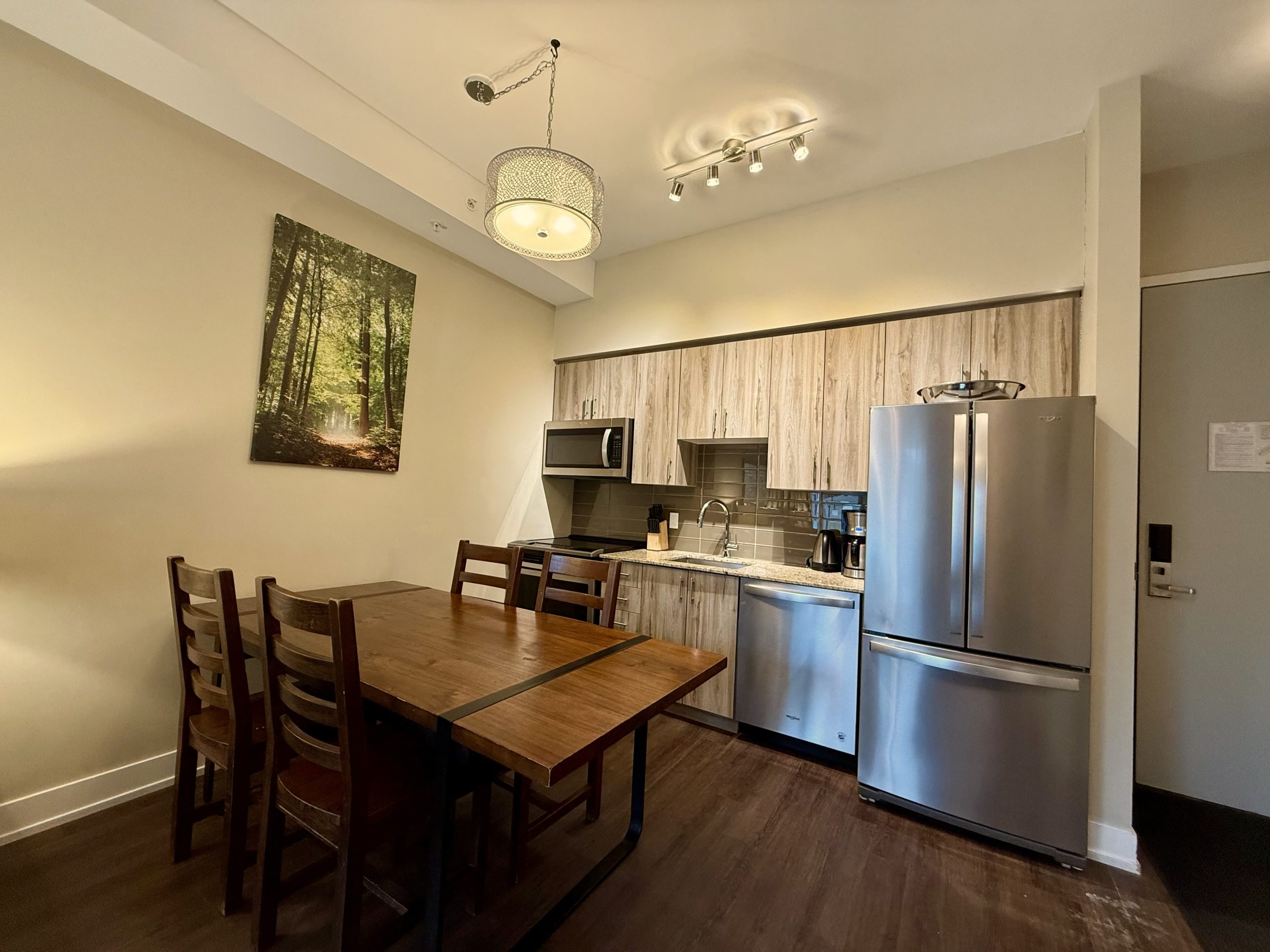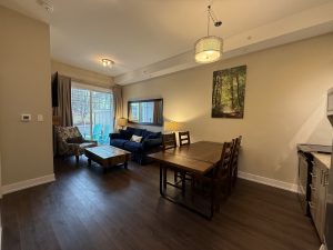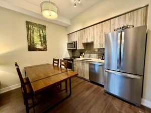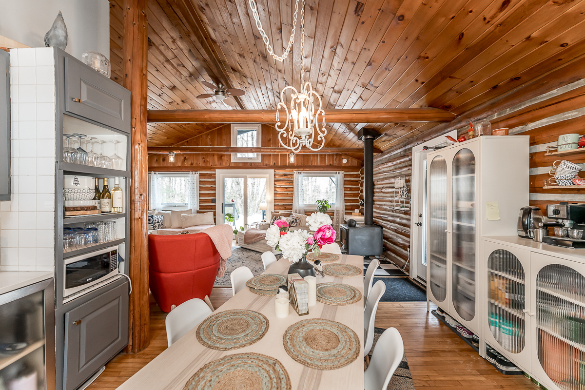 into the dining area and kitchen. Expansive 9-ft triple-glazed aluminum sliding doors create seamless indoor-outdoor flow. The kitchen is a true