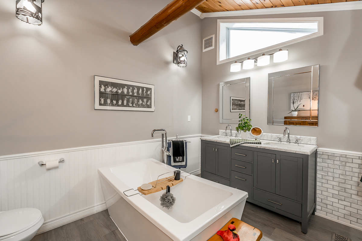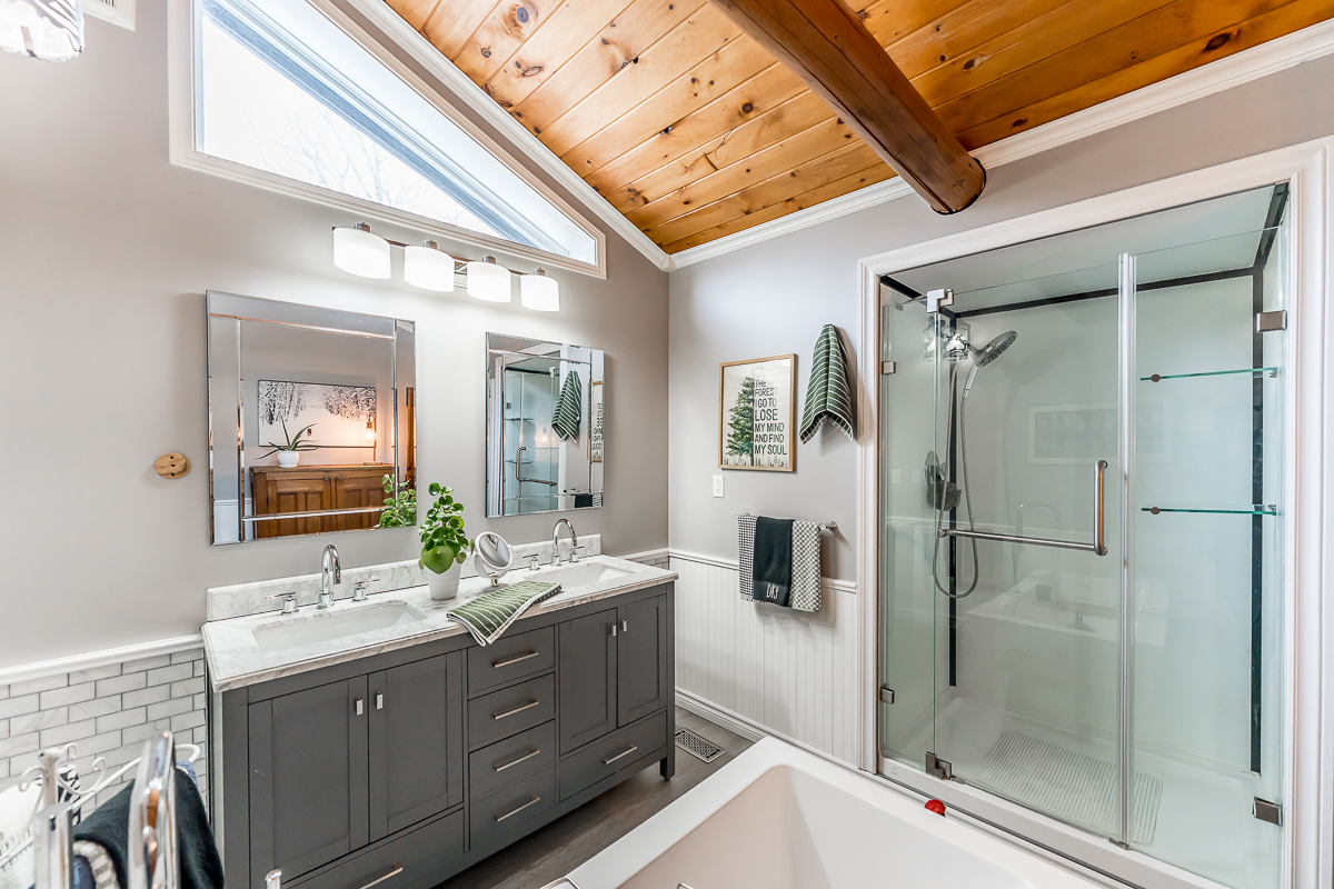 showcasing a steam shower, double vanity, Kohler fixtures, and a custom walk-in closet. Step directly onto a private deck from the bedroom,