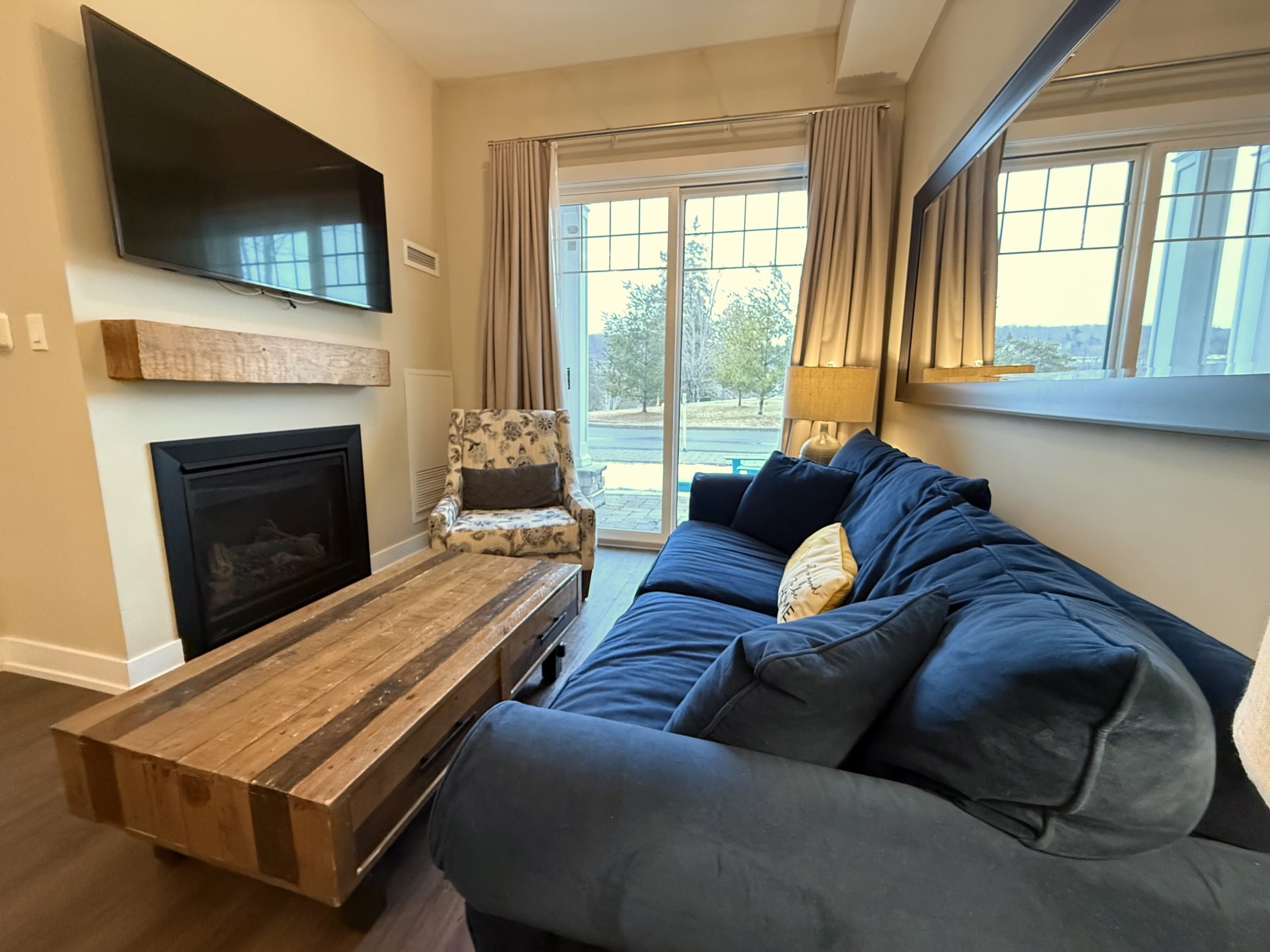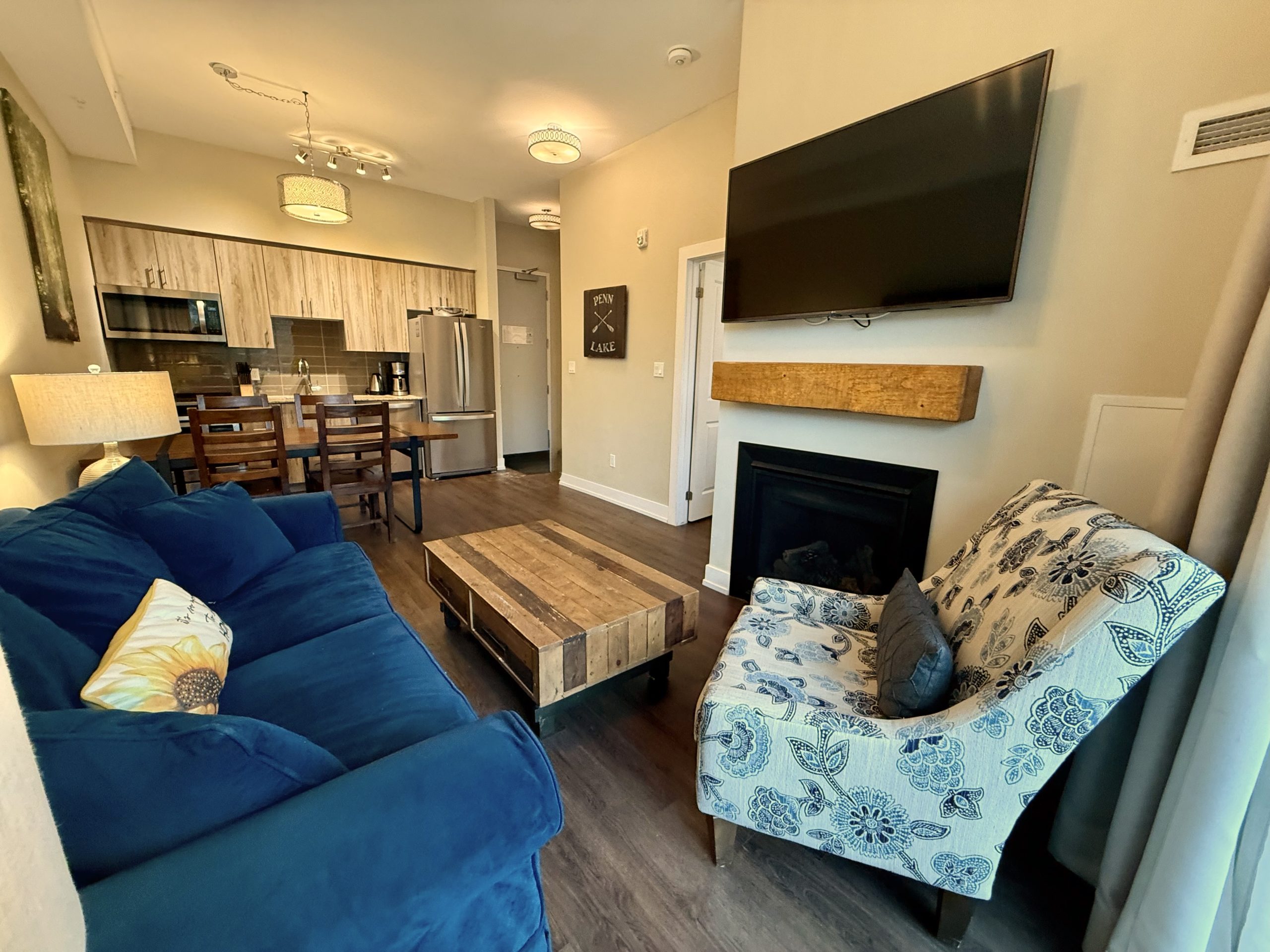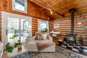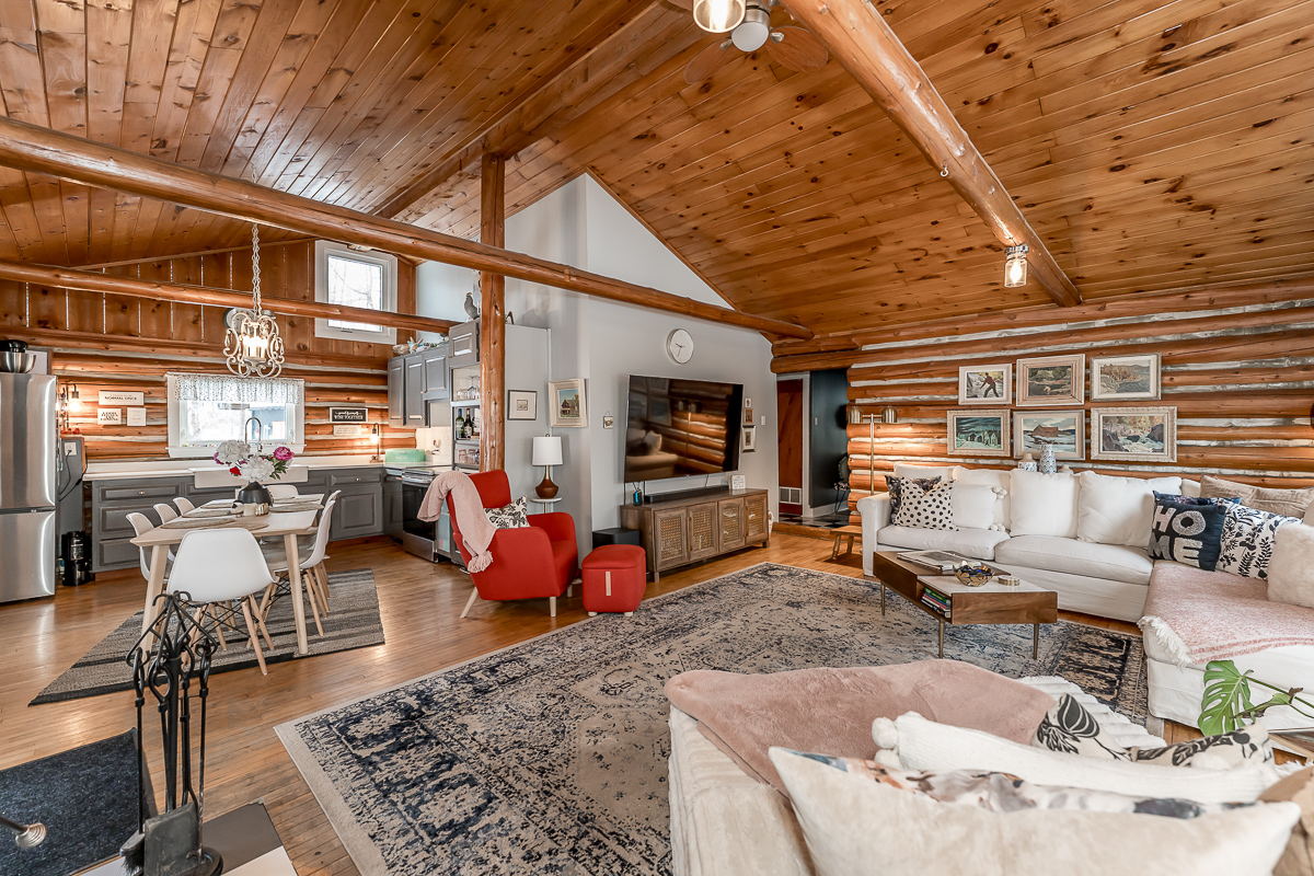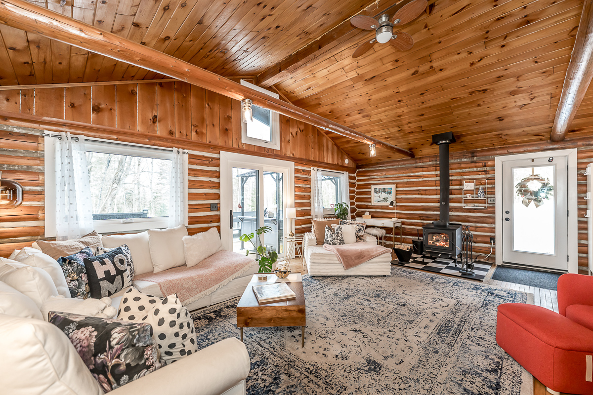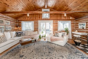 step through the grand front door, you are greeted by the great room with vaulted wood ceilings, custom stone fireplace, seamlessly opening